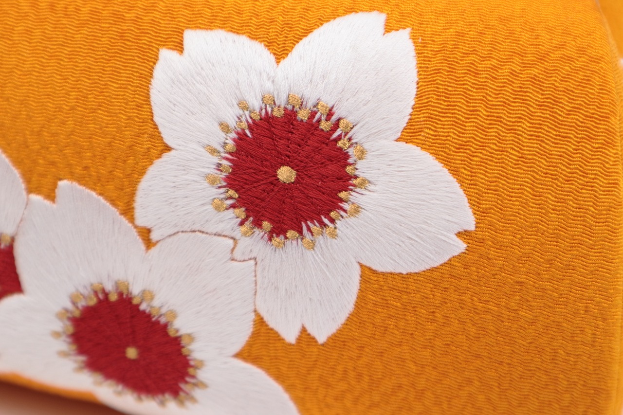 縮緬地に刺繍桜の可愛らしいバッグ。
